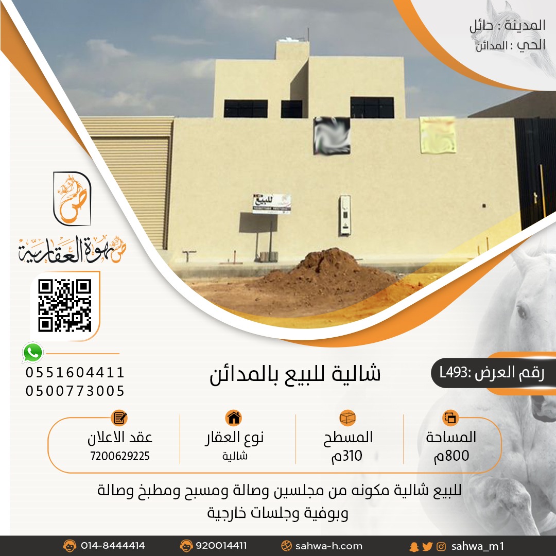 للبيع بالمدائن شاليه دورين البناء صبه يقبل البنك
