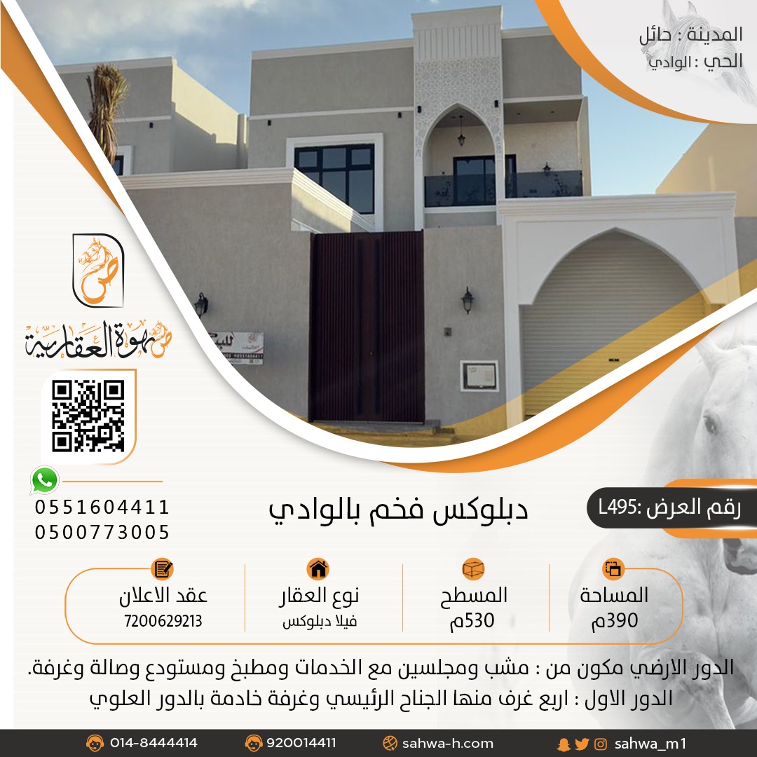 للبيع فيلا فاخرة في حي الوادي غرب الشريان