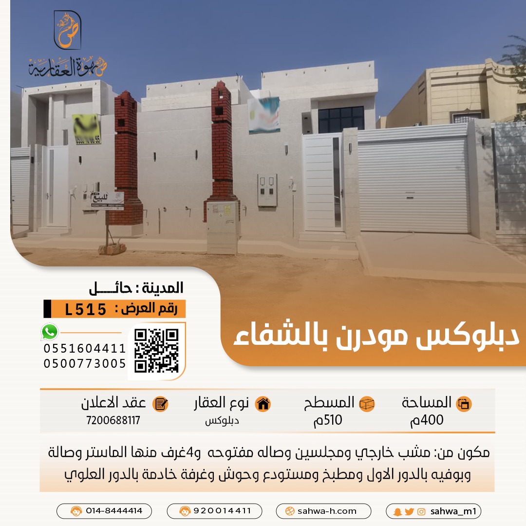 عنوان للاعلان:- دبلوكس مودرن بالشفاء